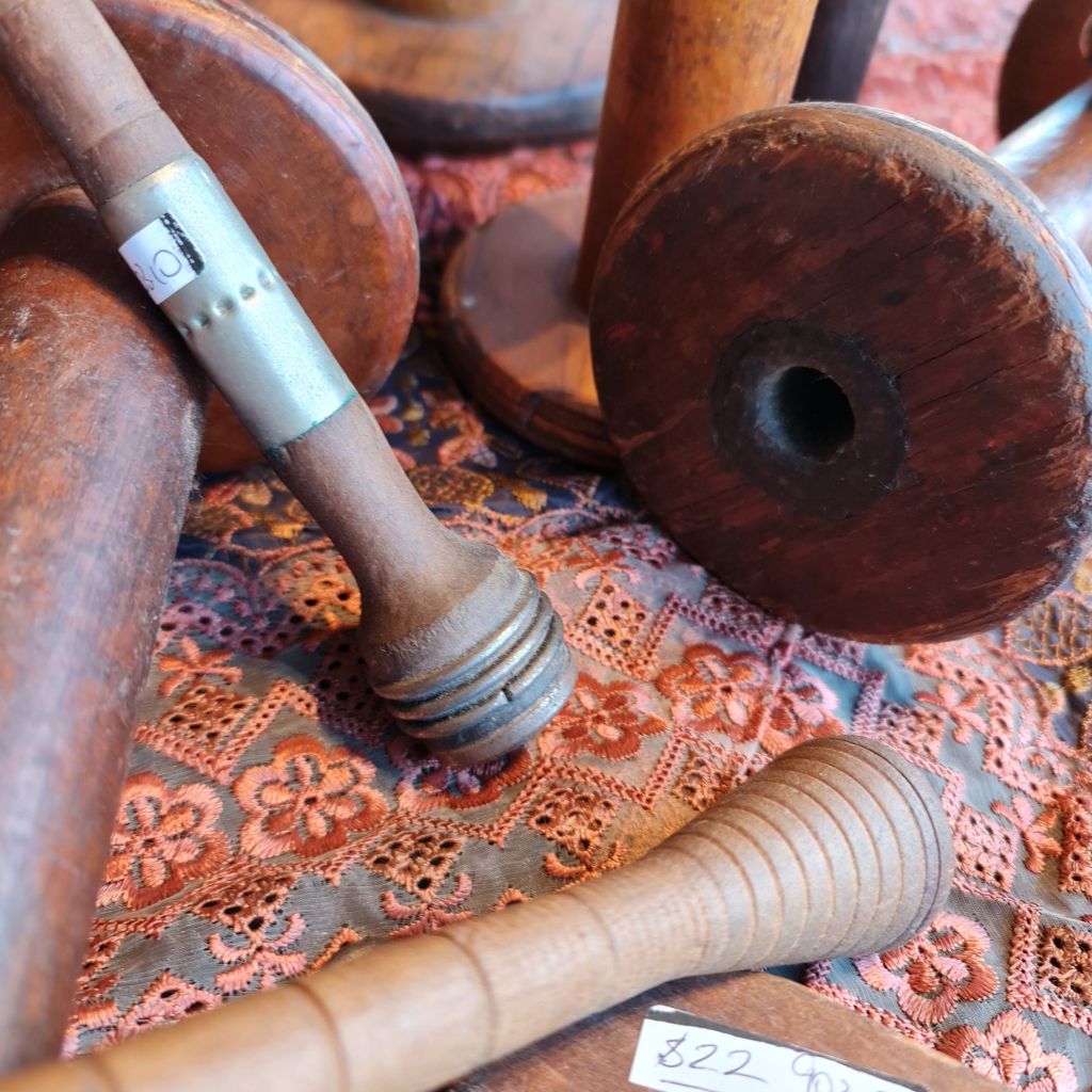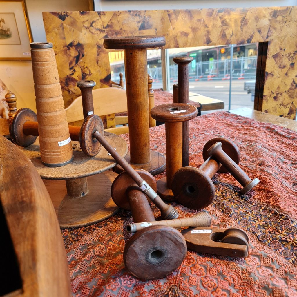 Large collection of weaver’s spindles or reels. Assembled by a professional museum curator over 50 years. Prices now 50% off.