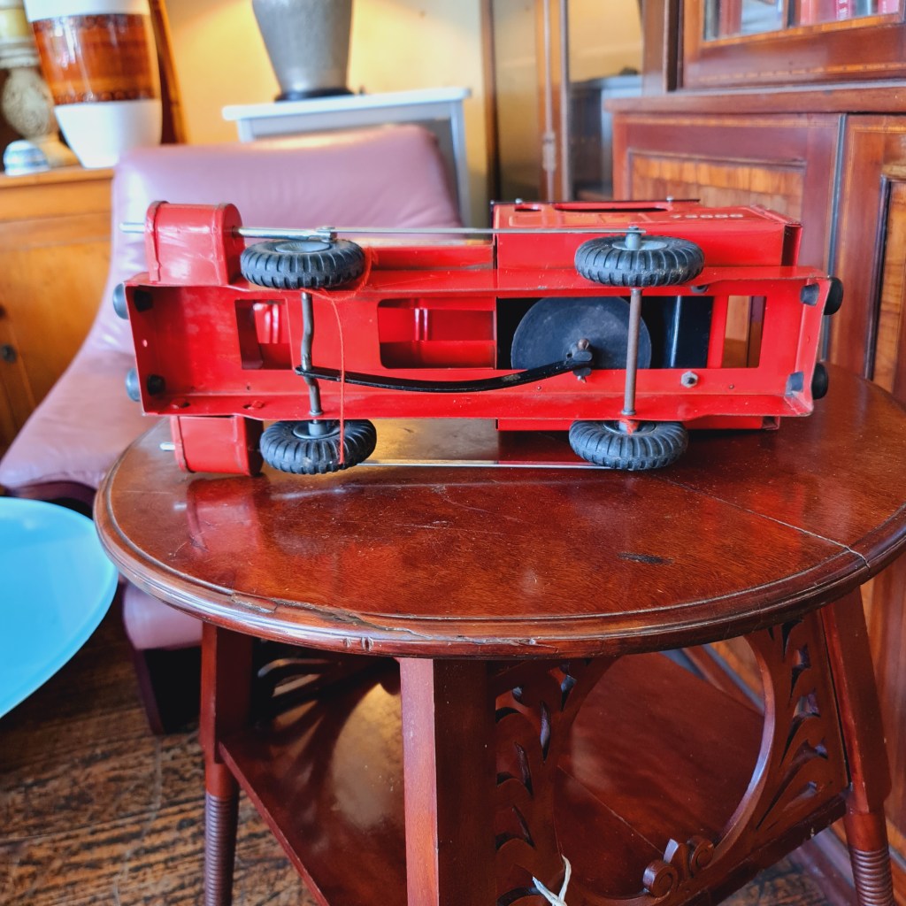 Tri-ang tin plate Puff Puff train engine. Made around 1950, there appear to be parts of the “bellows” missing and possibly a nose plate from the front. 23 cm high x 44 cm long and 19 cm wide. Price was $187, now $89 off at $98.