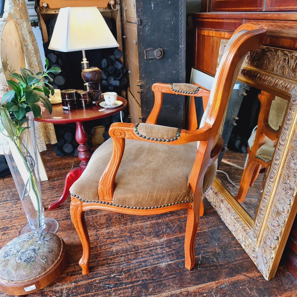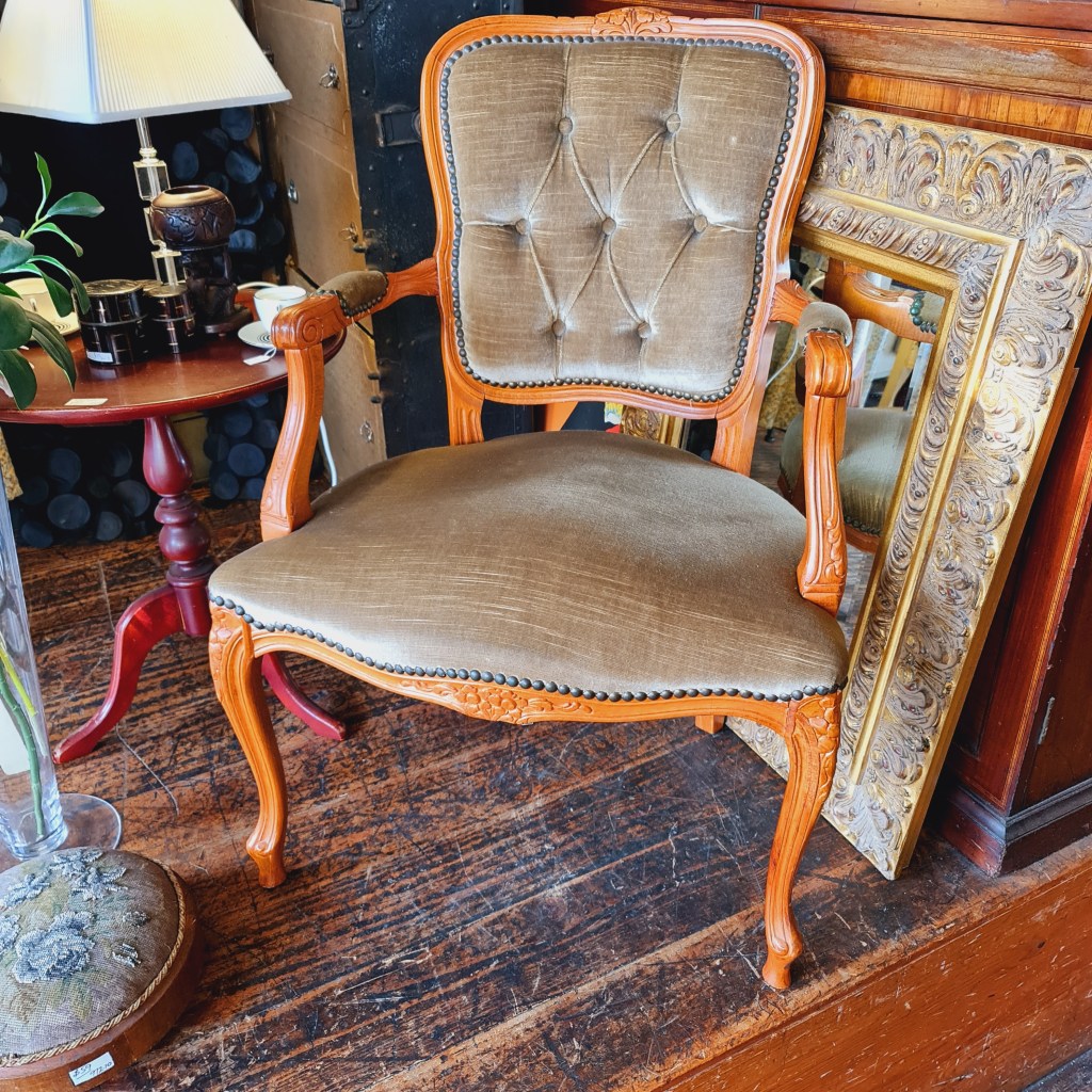 Armchair Chair France French Style April 9, 2025June 16, 2025 • grays303 A French style armchair with carved woodwork and gold upholstery. 90 cm high and 65 cm high and 65 cm deep. Price is $148 Share this: Click to share on X (Opens in new window) X Click to share on Facebook (Opens in new window) Facebook Like Loading...