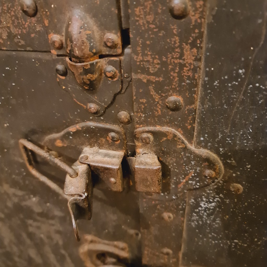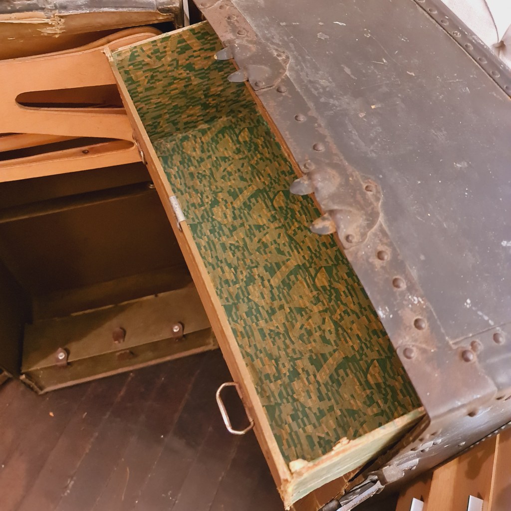 Fitted cabin trunk from the first quarter of the 20th century. In good useable condition. 107 cm high on it’s end and approx 50 cm square. Price is $390.