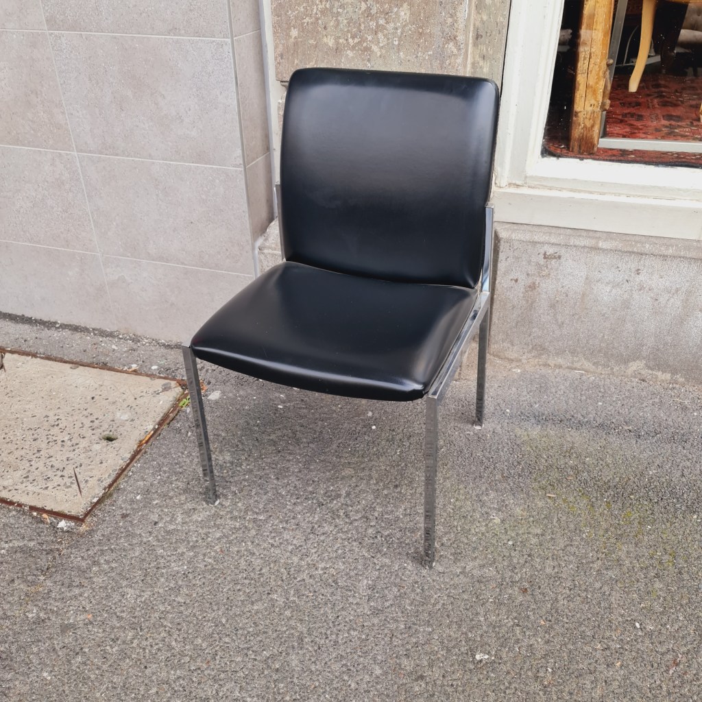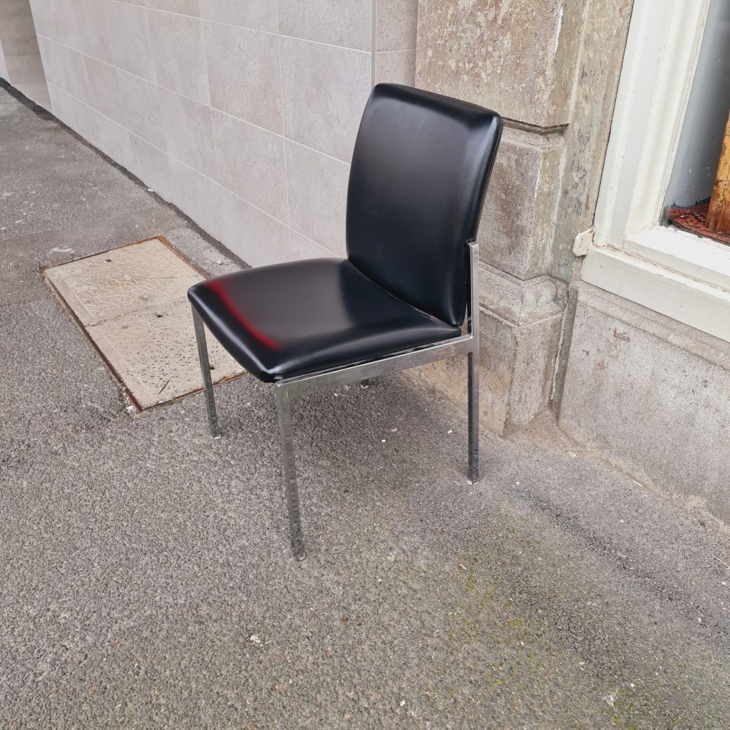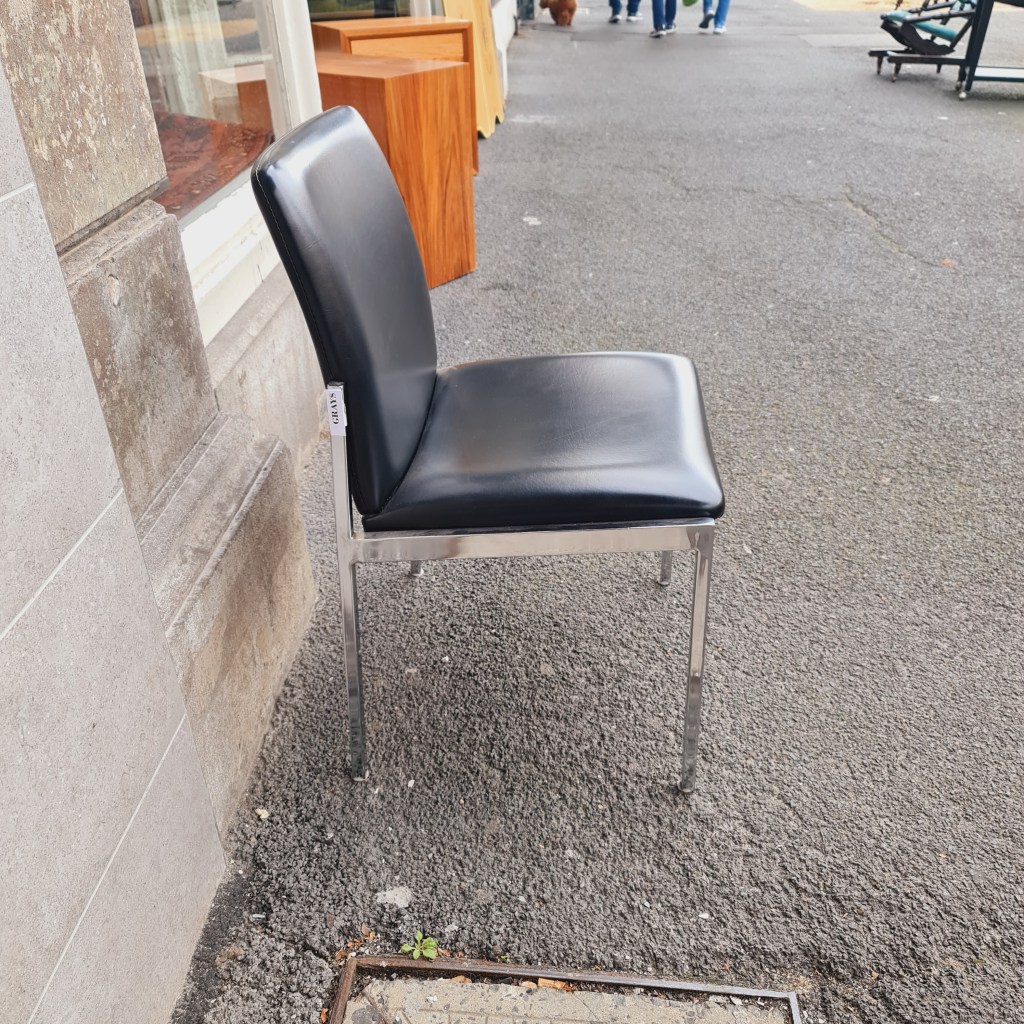 Chair Black and Chrome Modernist July 13, 2025 • grays303 Modern chair with chrome frame and leather upholstery. No faults to mention. 82 cm high x 52 cm wide and 60 cm deep. $65. Share this: Click to share on X (Opens in new window) X Click to share on Facebook (Opens in new window) Facebook Like Loading...