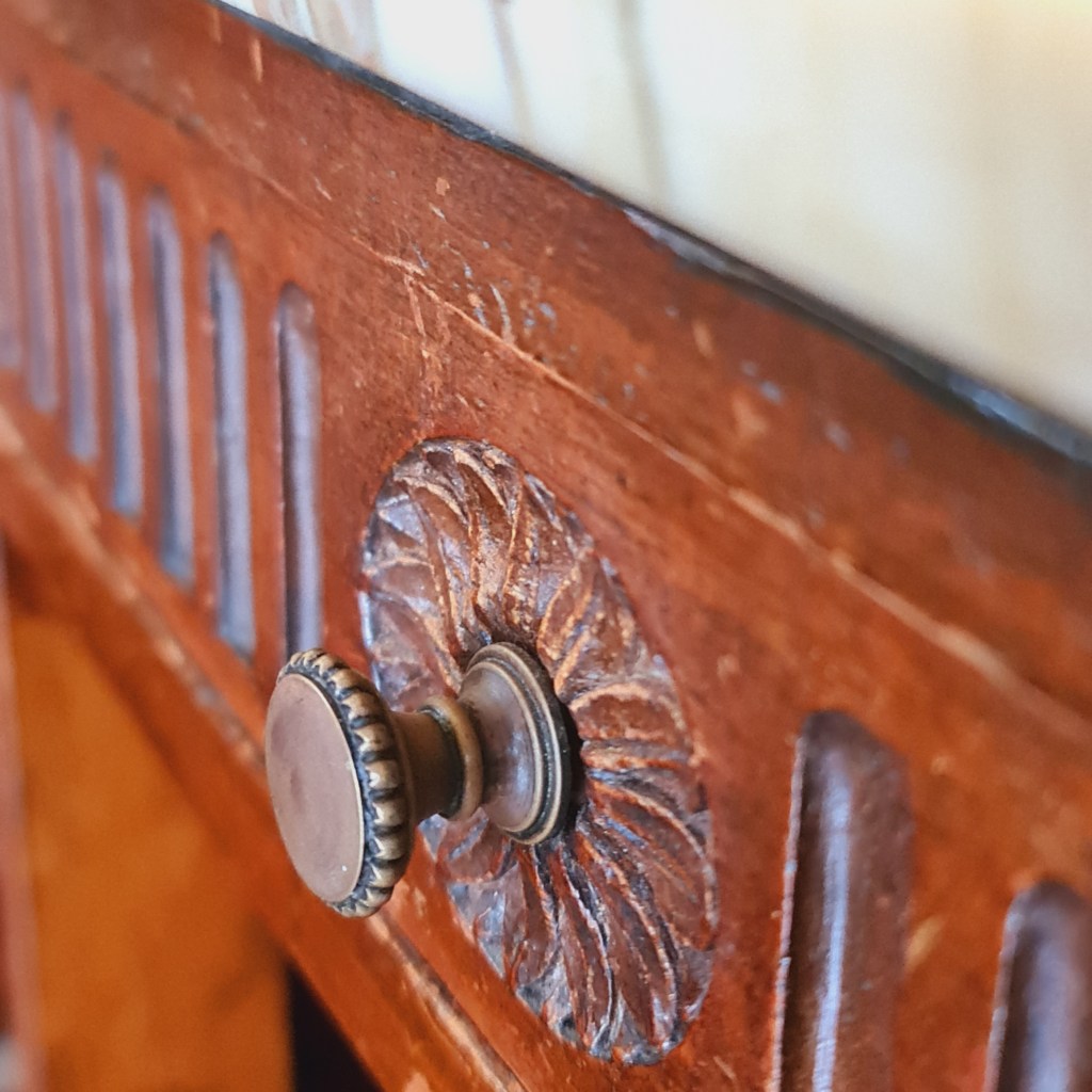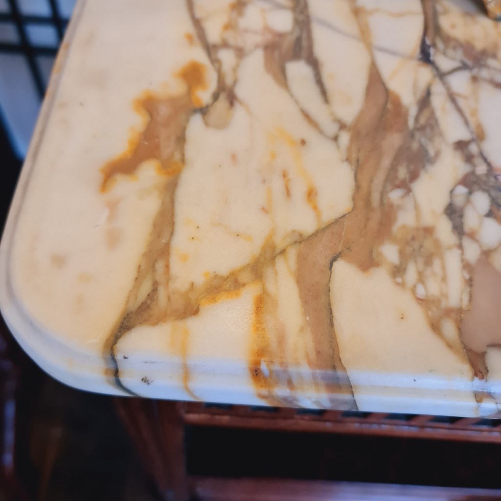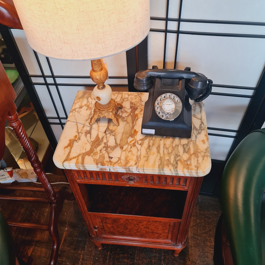 Marble top bedside cabinet made in France in the 1800’s with original ceramic liner. 80 cm high x 47 cm wide and 35 cm deep. $485.