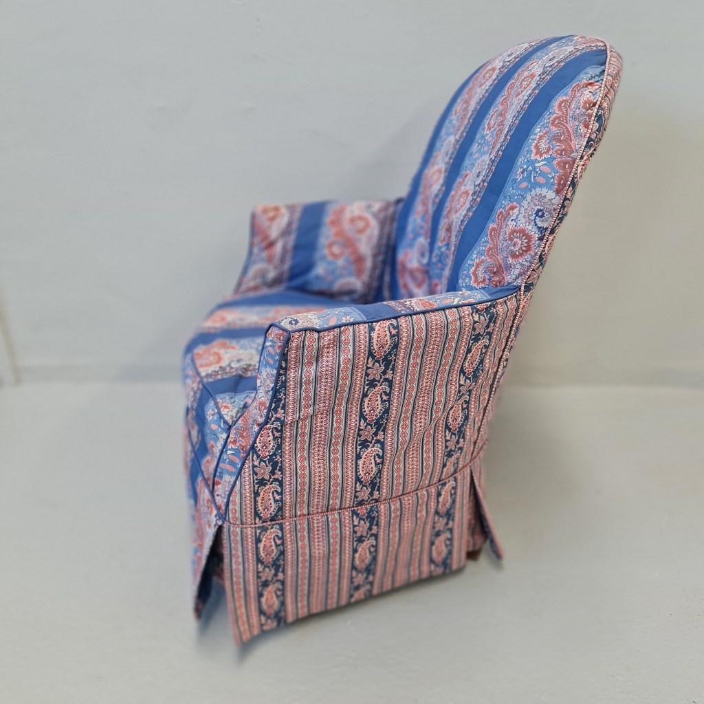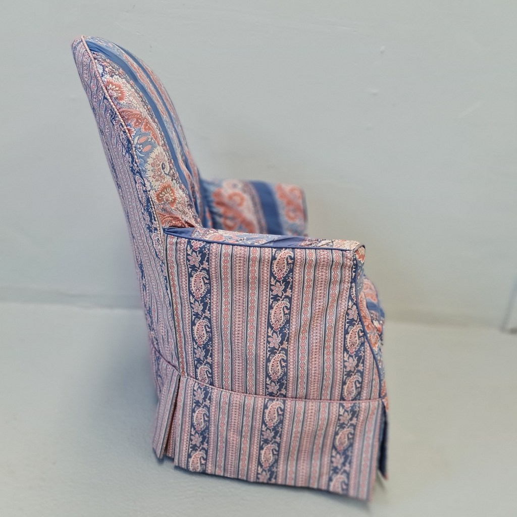 Petite bedroom chair on early 20th century frame with later chintz slip cover. Ideal for smaller spaces, this lovely little chair would look good in your bedroom or lounge. 80 cm high x 65 cm wide x 70 cm deep. Price is $78.