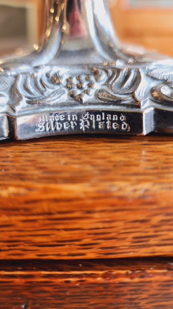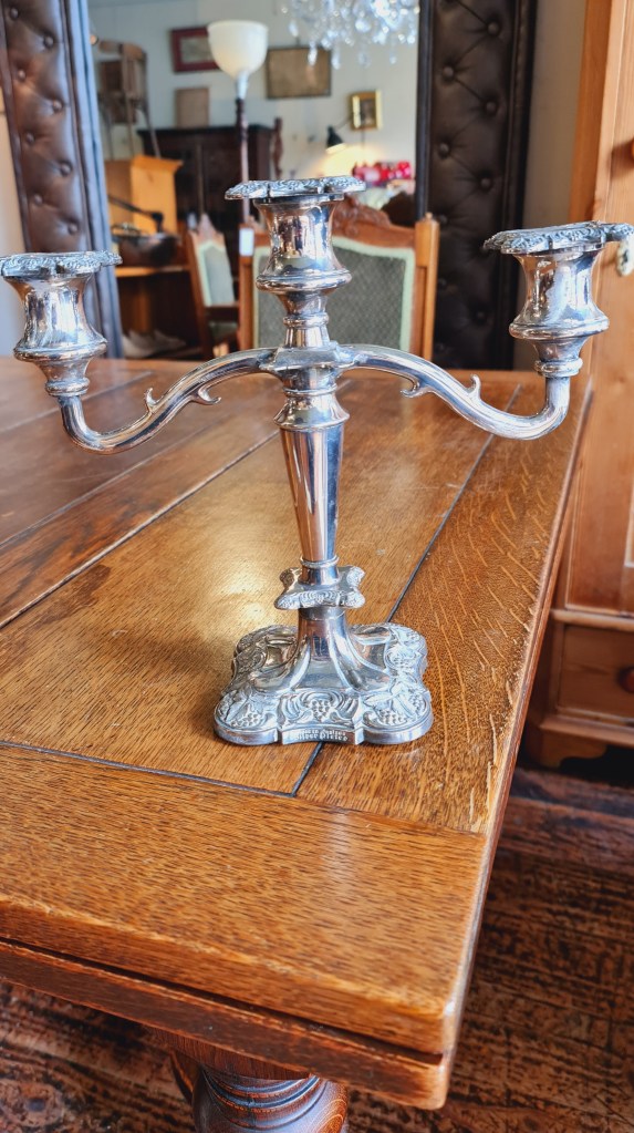 Candelabra Candelabrum Silver Plated England Candle September 21, 2025 • grays303 An impressive silver plated candleabra, made in England. 26 cm high x 28 cm wide and 10 cm deep. $165. Share this: Click to share on X (Opens in new window) X Click to share on Facebook (Opens in new window) Facebook Like Loading...