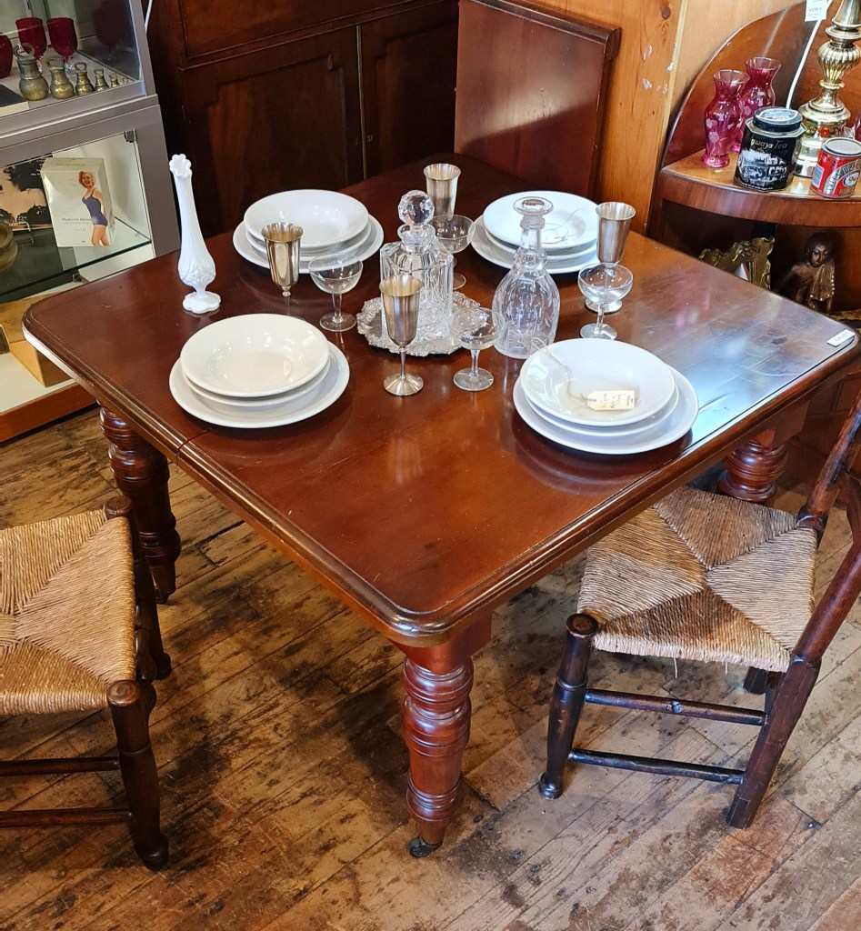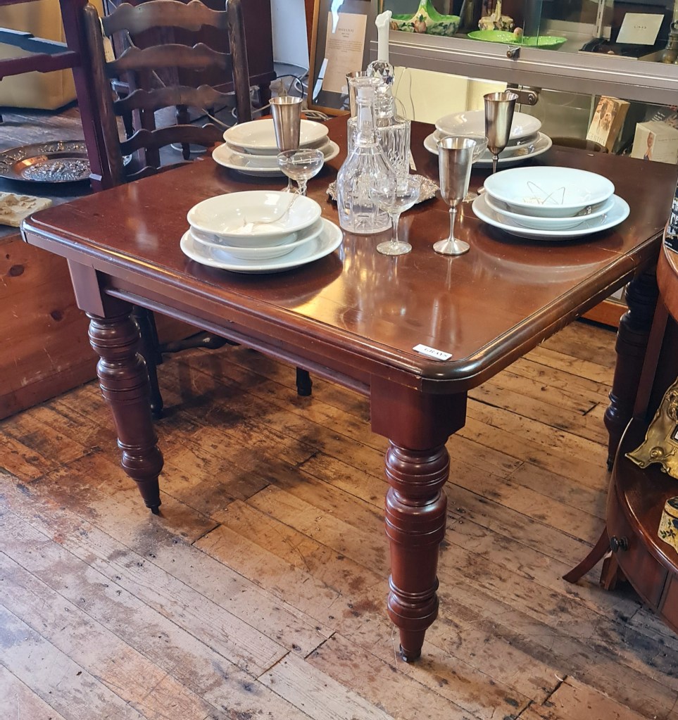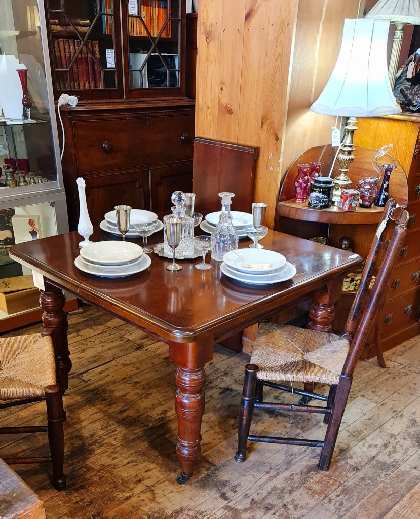 This antique blackwood table represents outstanding value as this price includes a leaf (40 cm) and a handle. Measurements are 75 cm high with a square top of 110 x 110 cm. Price was $295, now $100 off at $195.