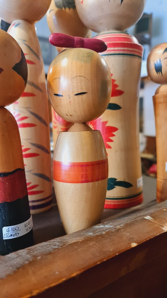 An assortment of Kokeshi dolls in various sizes. Currently half marked prices. From $25 each after the discount. 16 to 34 cm high.