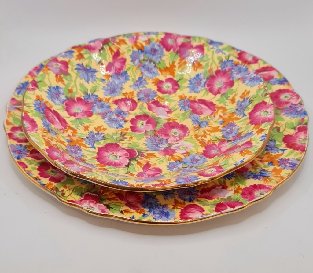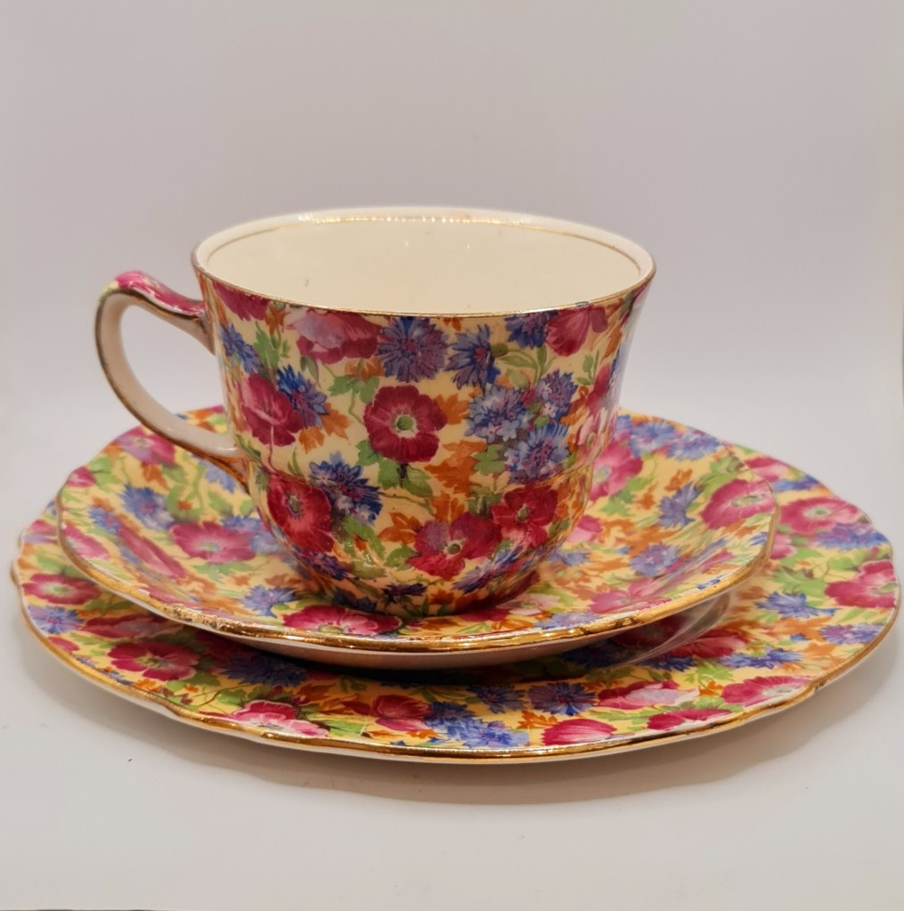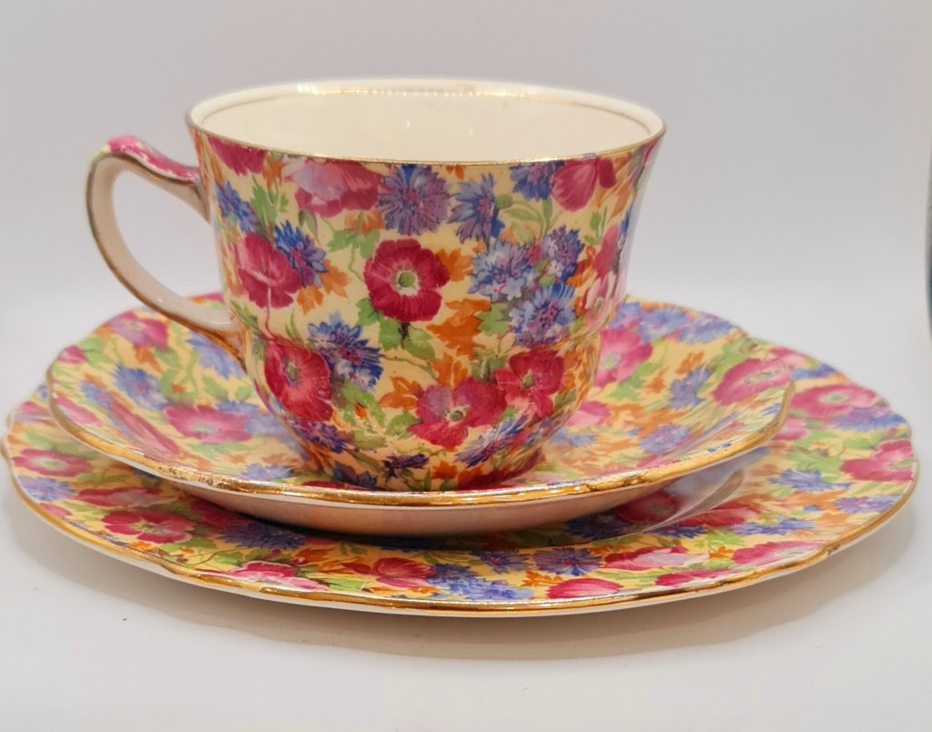 Royal Winton all over floral cup, saucer and plate by Grimwade. c 1950. $35.