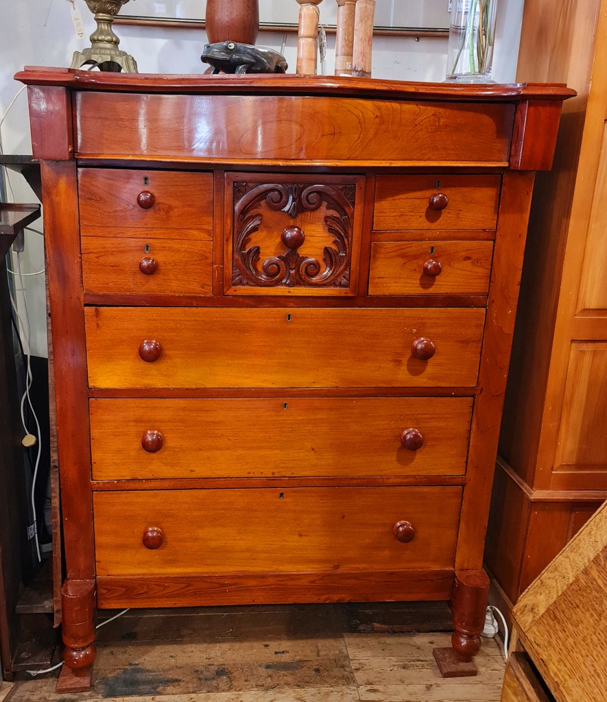 Tall, antique, cedar chest of drawers made in Australia around 1900. No faults to mention. 146 cm high x 113 cm wide x 50 cm deep. Price is $780.