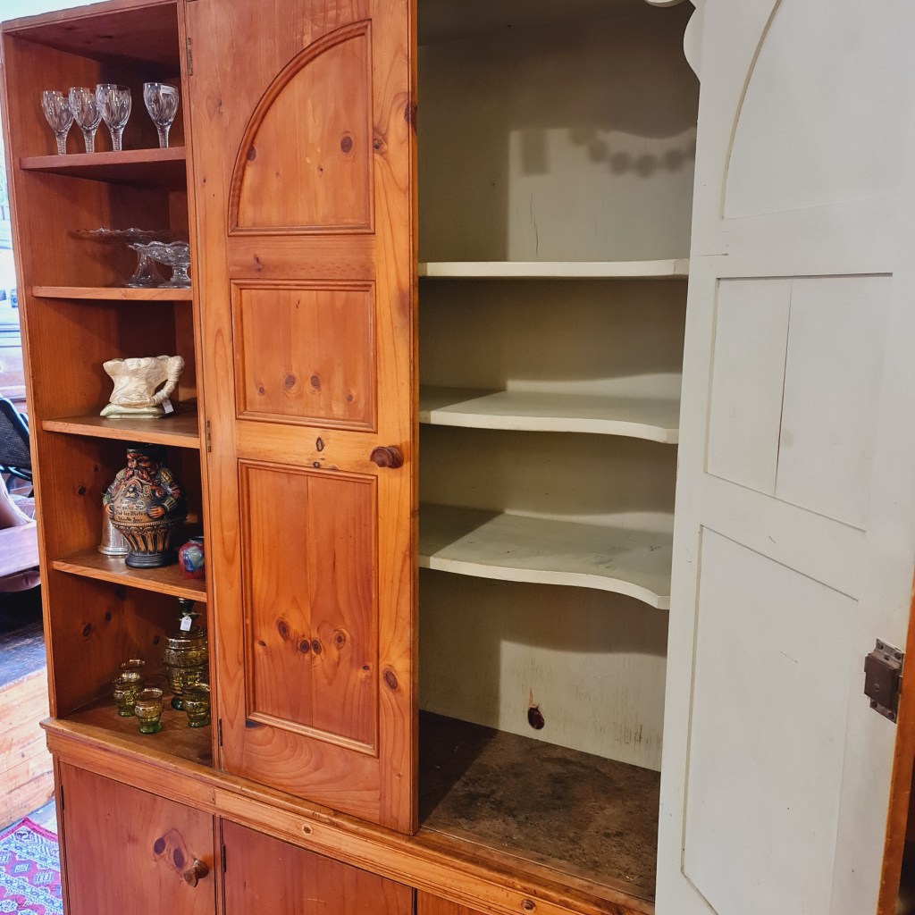 Custom made 1960’s wall cabinet offering huge storage with a relatively small footprint. Faults are limited to missing handles. We deliver on Saturday mornings in the Melbourne metro area. 218 cm high x 170 cm wide and 38 cm deep. Price is $690