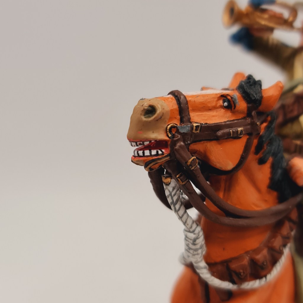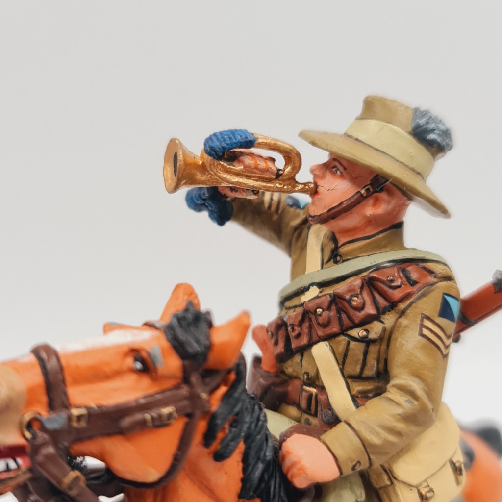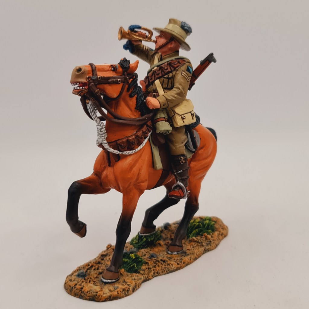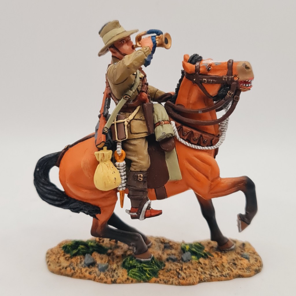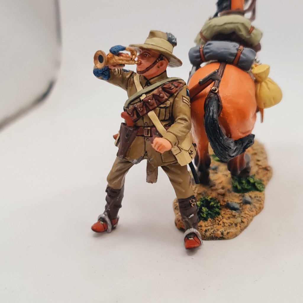 Diecast soldier, in this case a bugler on horseback (Model AL0002) by King and Country. Complete with box and original packing foam. $85