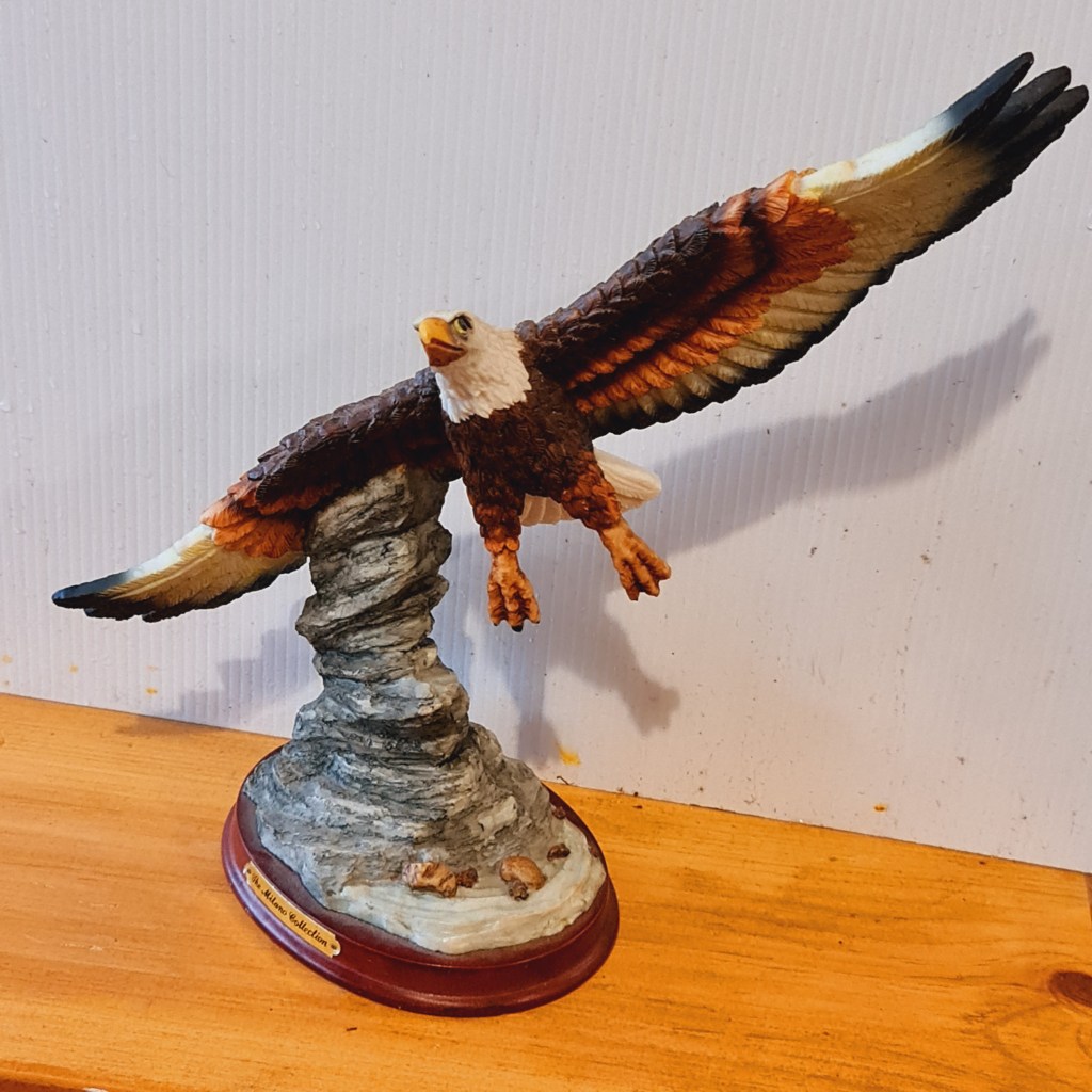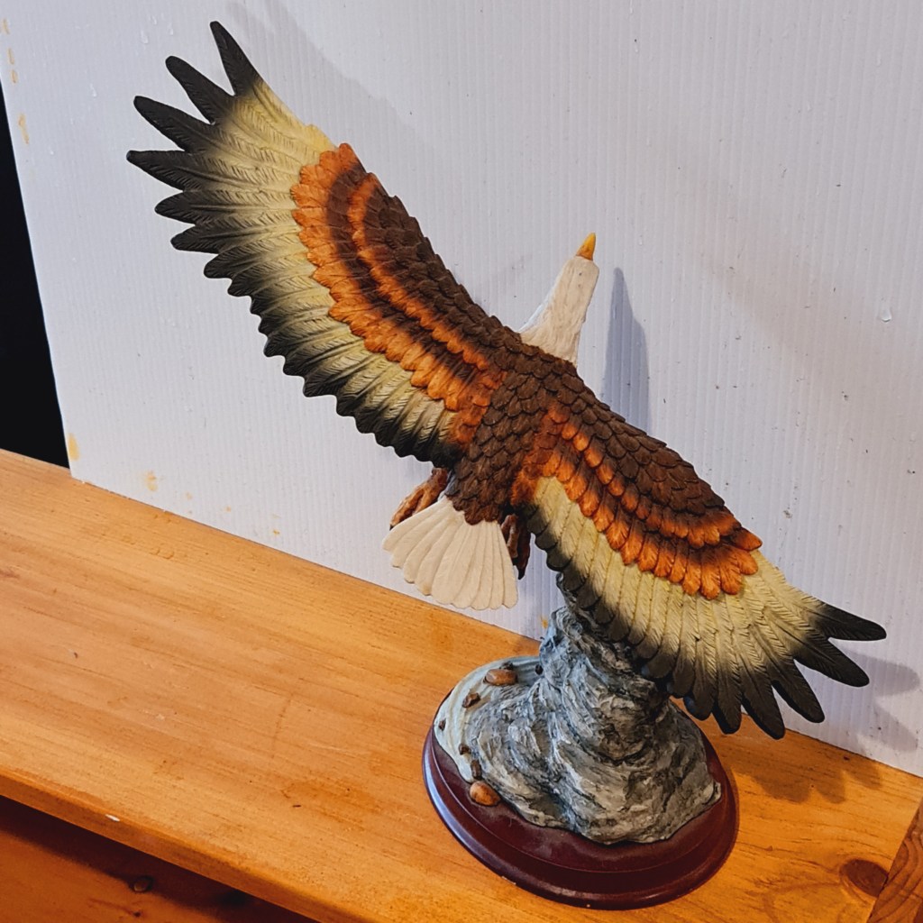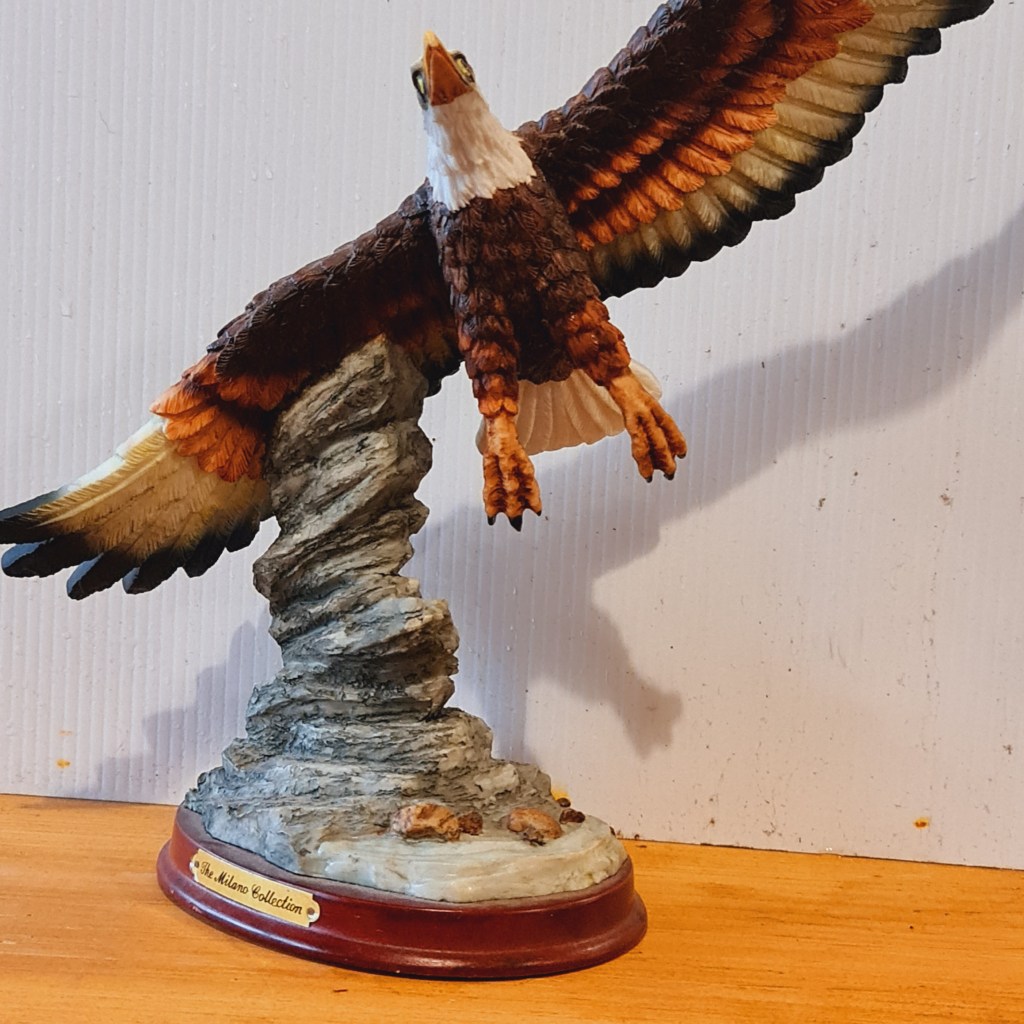 An Americal eagle with a wingspan of 40 cm modelled by The Milano Collection. Made from resin with detailed and authentic painted features and feathers. $68.