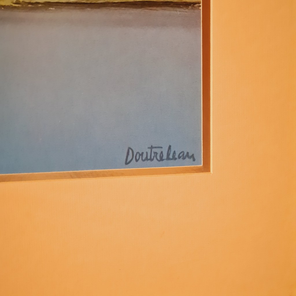 A well framed print by French artist Pierre Doutreleau (born 1938). Known for his particular interest in light M. Douteleau started exhibiting in 1958 and later became interested in the art of lithography. This is a large work. $95.