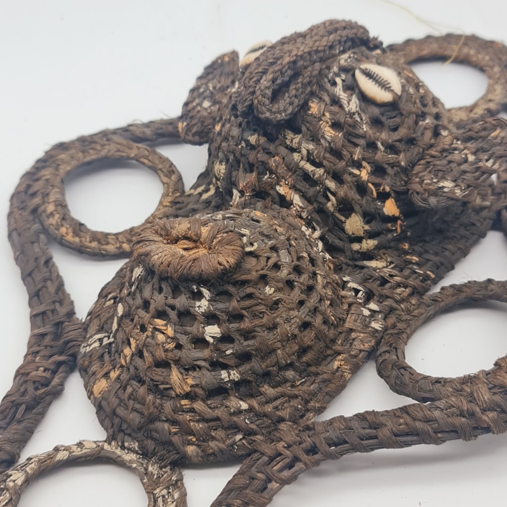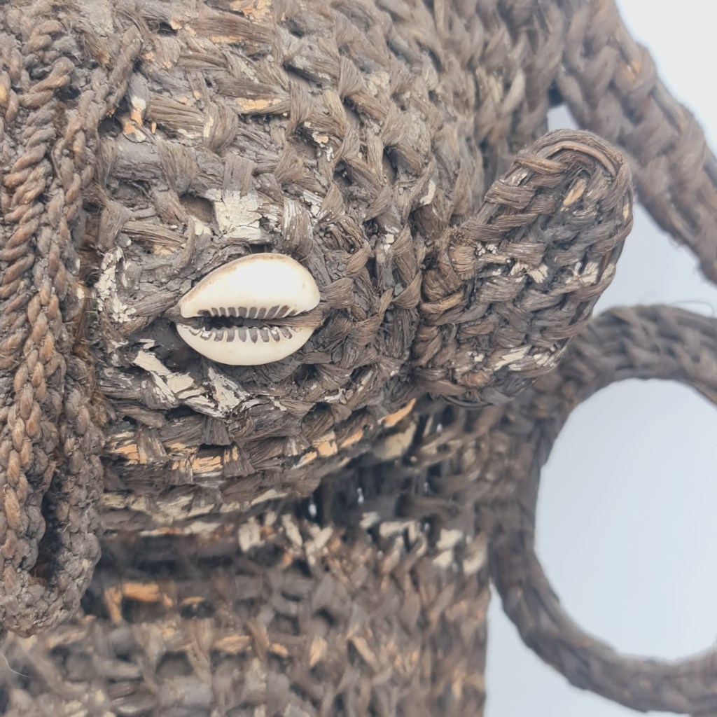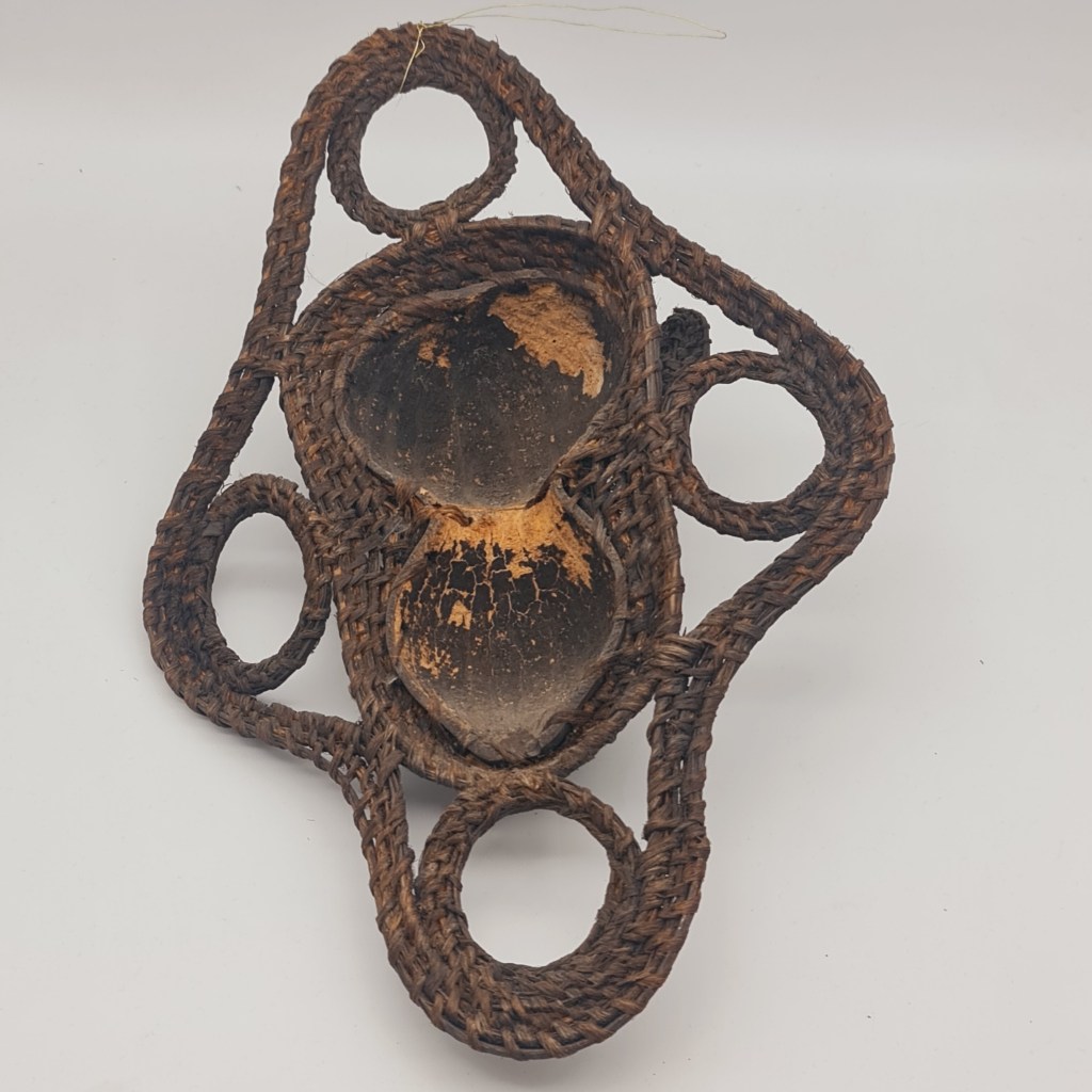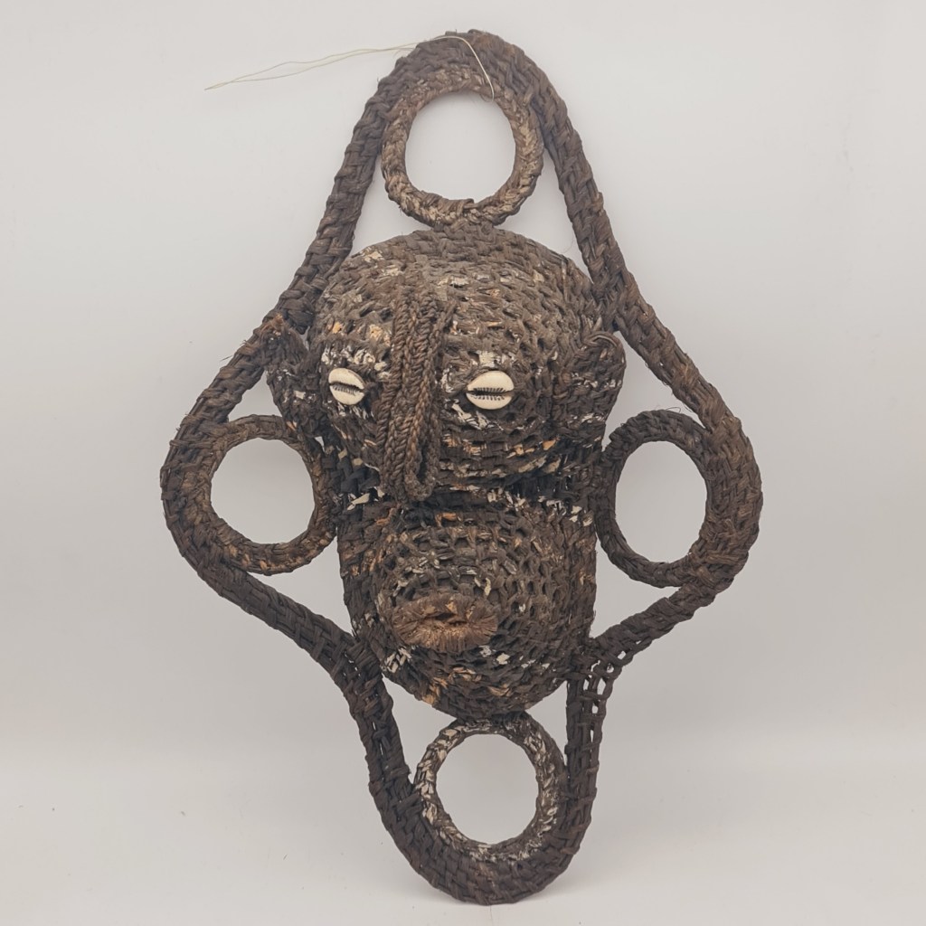 Woven mask from Papua New Guinea from a private collection. Probably from the mid 1900’s or earlier and incorporating shells normally asociated with the Sepik River area. 42 cm high x 26 cm wide and 10 cm deep. Price is $100.