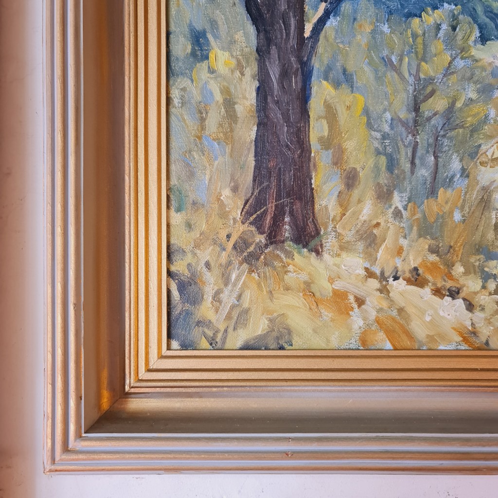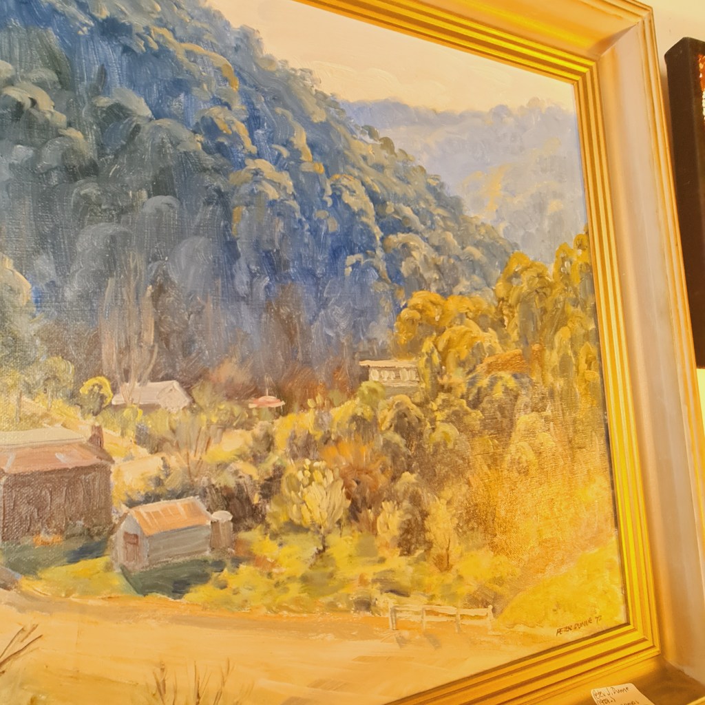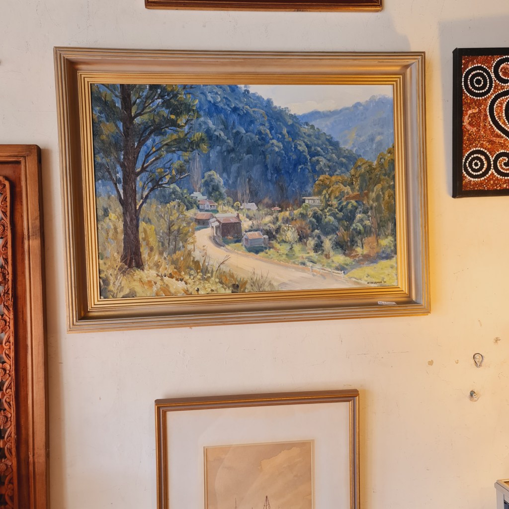 Original oil painting in a frame by Peter E Dunne. A signed Australian landscape from the late 1900’s. Mr Dunne’s work is represented in regional galleries. 57 cm x 80 cm. $195