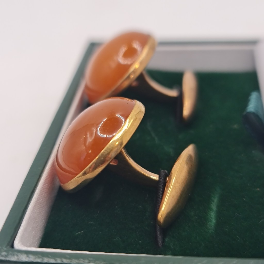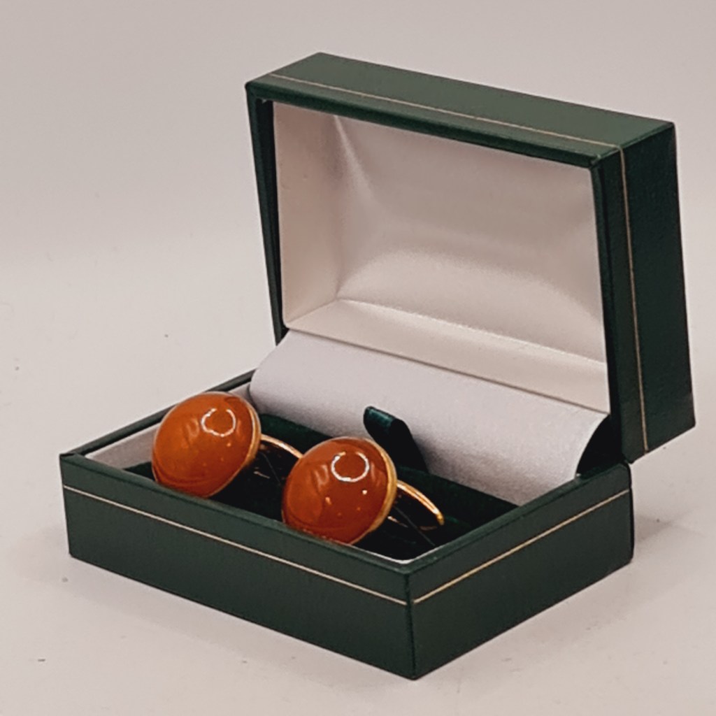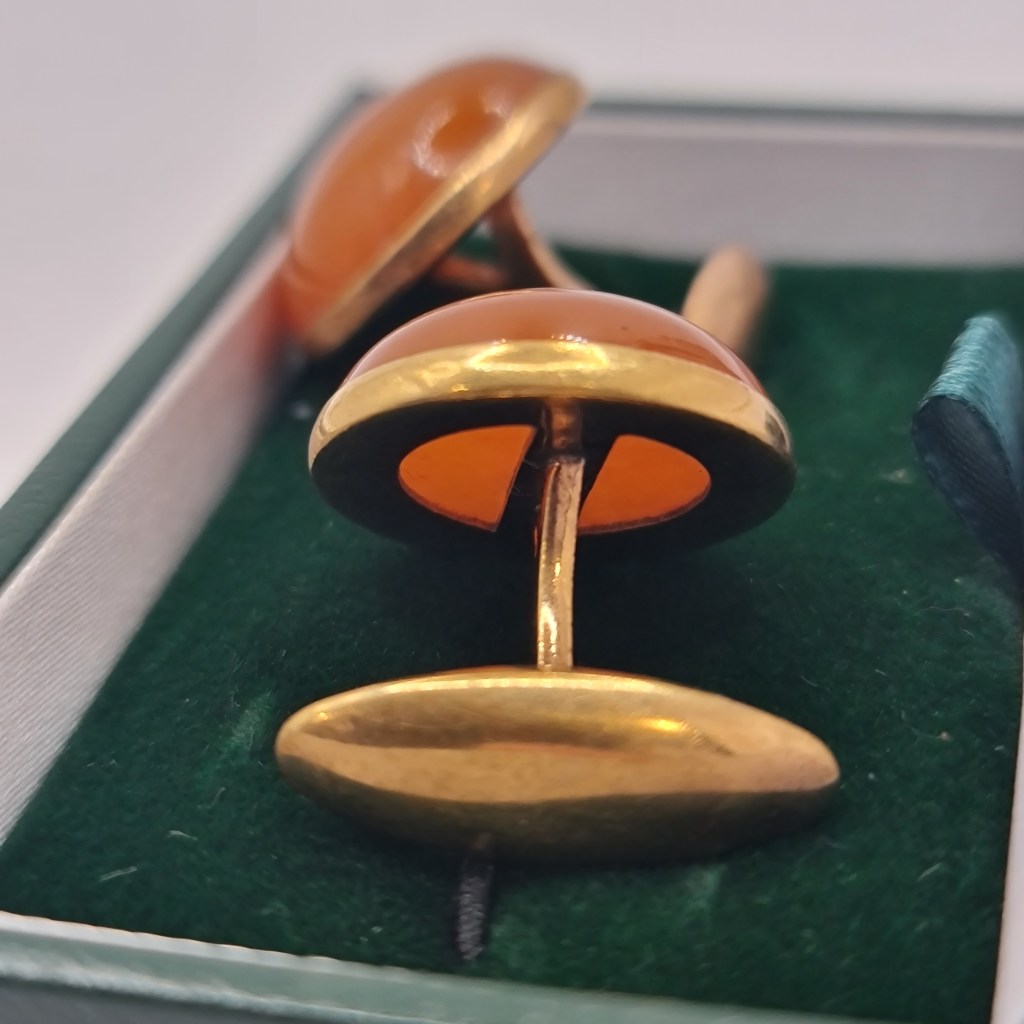 Cufflinks Gold Plate Amber March 21, 2026 • grays303 Cufflinks incorporating amber in a rose gold plated mount. Boxed, each is 20 mm diameter. $49. Share this: Share on X (Opens in new window) X Share on Facebook (Opens in new window) Facebook Like Loading...