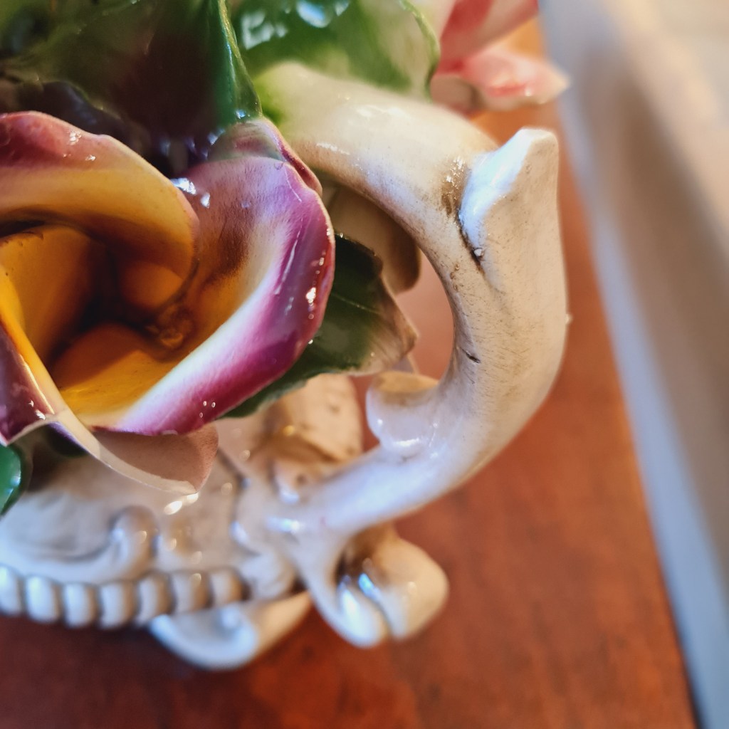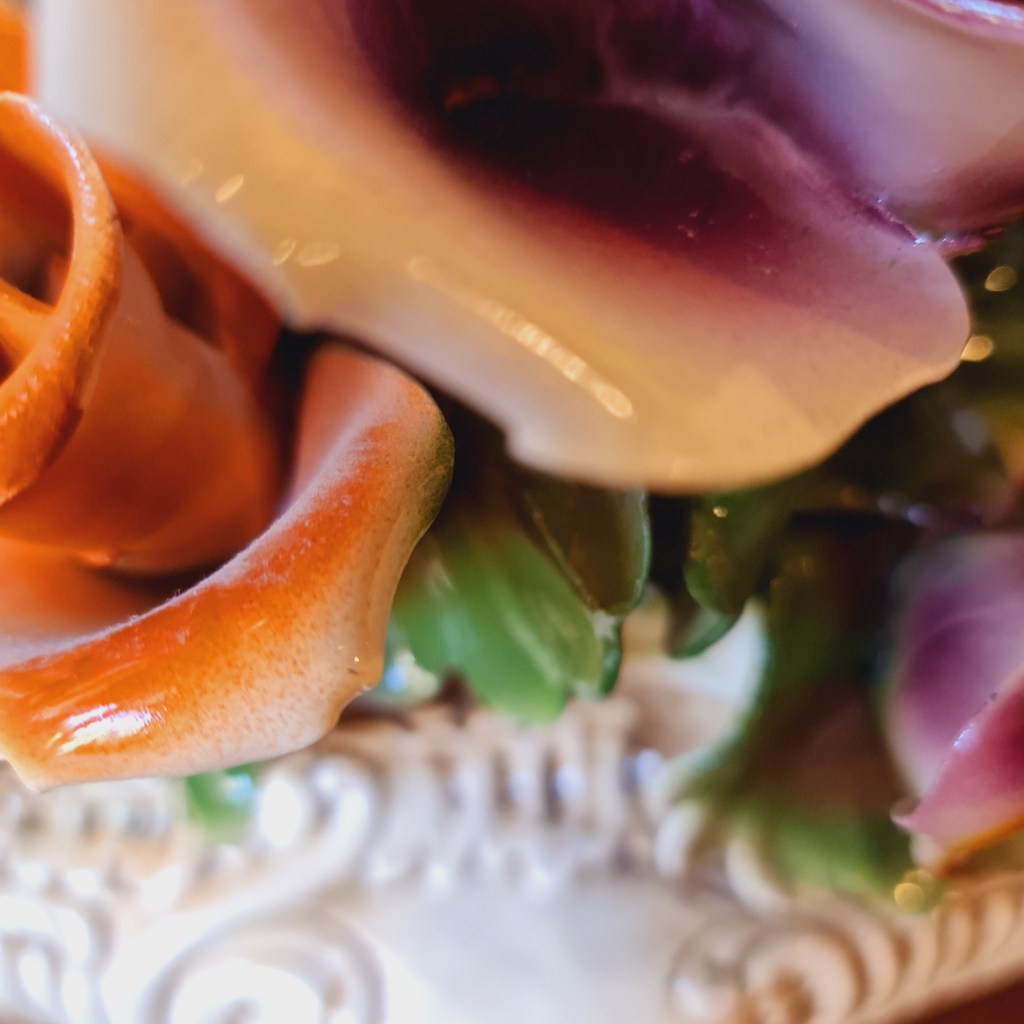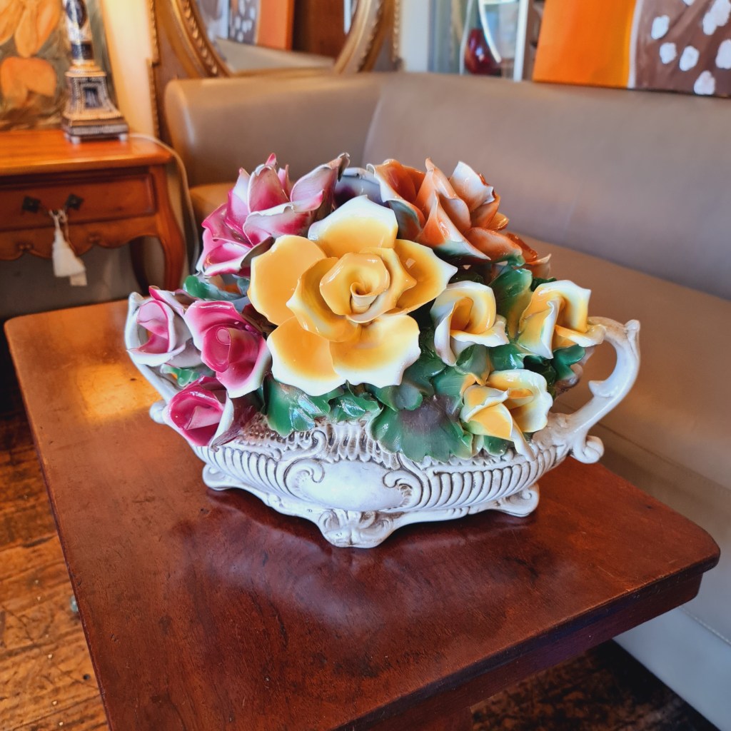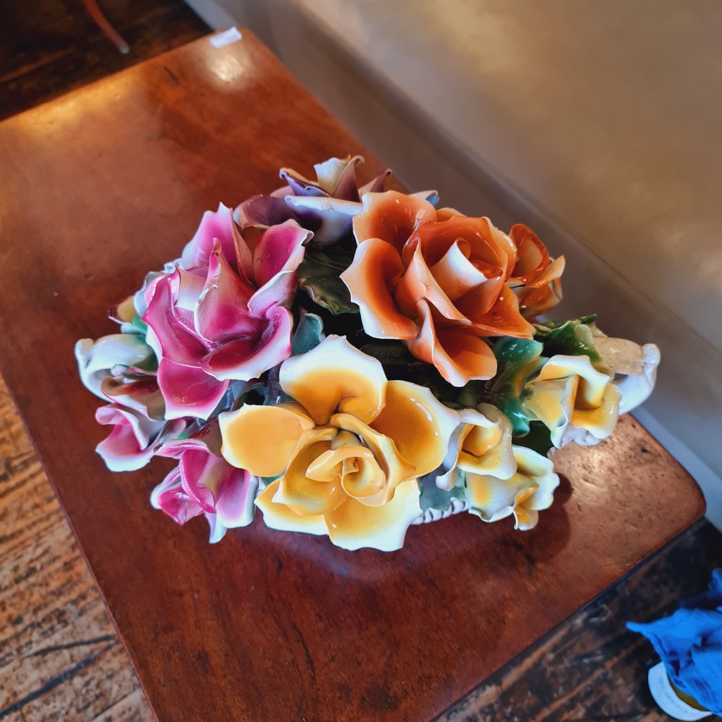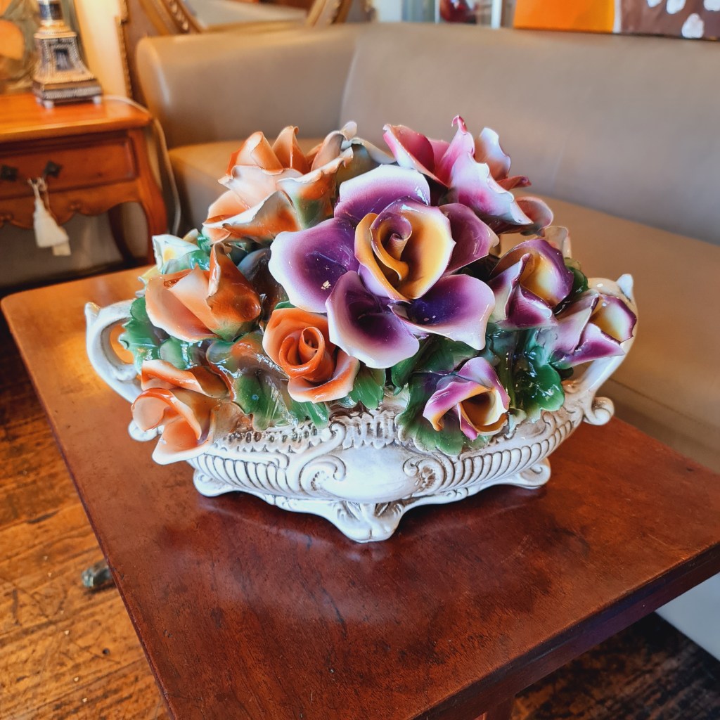 Capodimonte floral arrangement in bowl. Made in Italy and stamped on the base. There are some small losses (see photos). There is wide variation with listed prices for similar A/F examples priced at over A$3,000 by very experienced dealers. We are sure you will do your own research.
