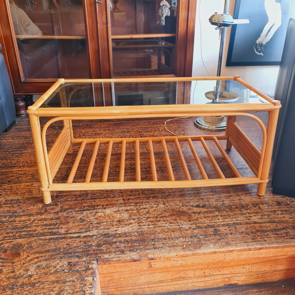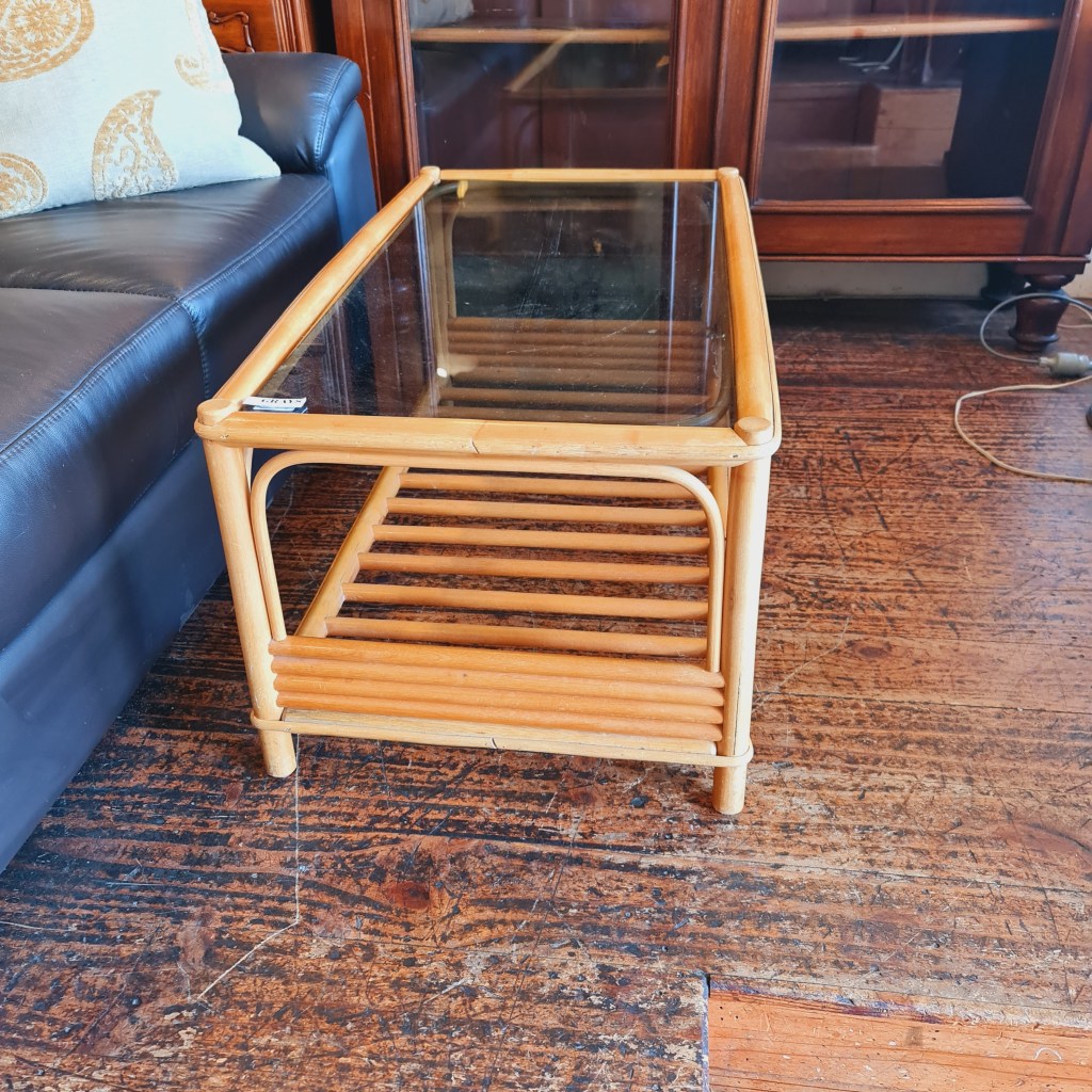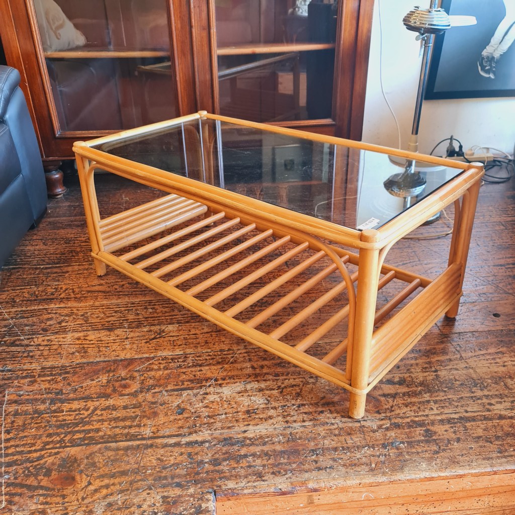 Rectangular Coffee Table with a Cane Frame and a Glass Top April 5, 2026 • grays303 Cane framed coffee table with glass top and storage below. 46 cm high x 100cm x 53 cm. Price is $190. Stock #600.28 Share this: Share on X (Opens in new window) X Share on Facebook (Opens in new window) Facebook Like Loading...